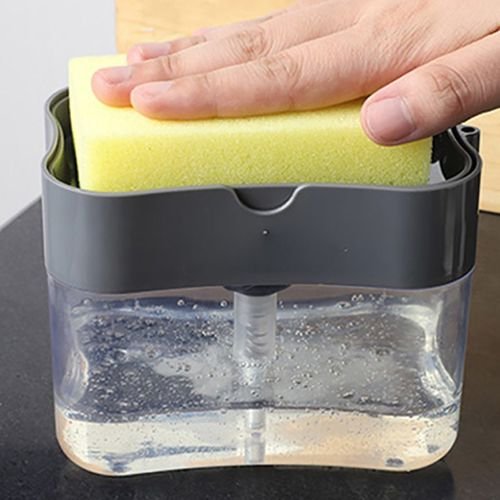 Made of plastic and sponge, this detergent box is durable.